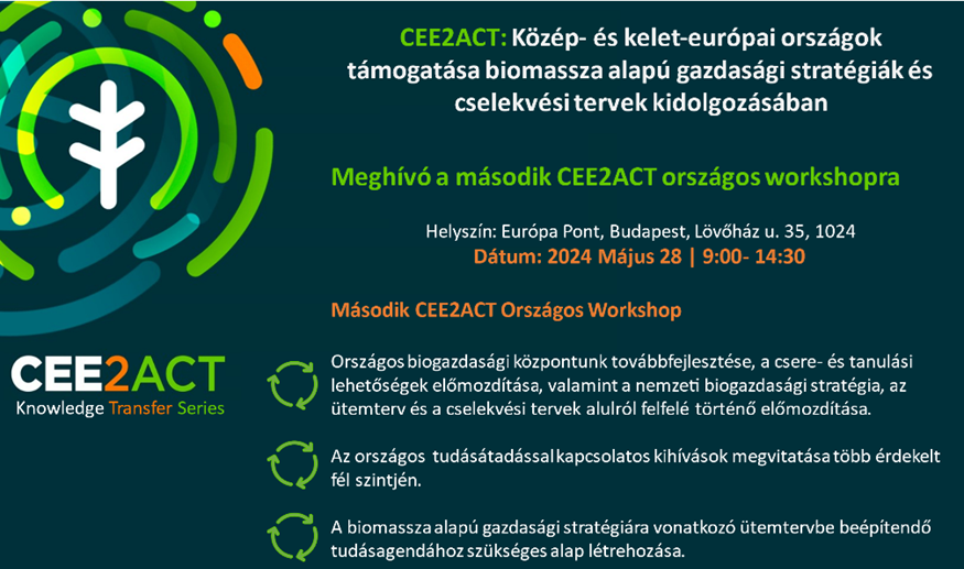 A Geonardo Kft. által rendezett, második CEE2ACT projekt Nemzeti Workshopja, a budapesti Európa Pontban került megrendezésre 2024 május 28-án. A workshopon 20 résztvevő vett részt; akadémiai, kormányzati, kis- és középvállalkozások, civil szervezetek, kutatási és innovációs intézetek képviseletében/képviselői Magyarországról.