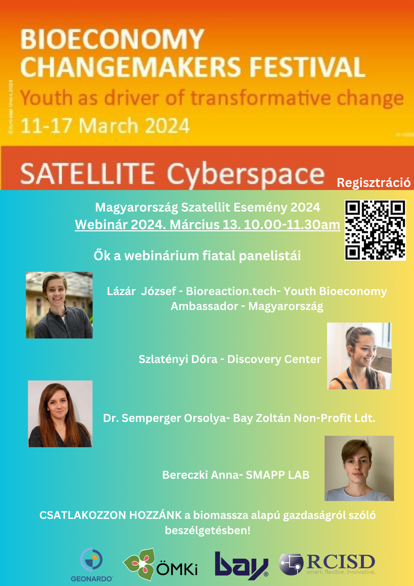 A 2024. március 11-17. között megrendezésre kerülő Bioeconomy Changemakers Festival keretében 2024. március 13-án a bioeconomy ágazat kulcsszereplőinek dinamikus partnersége közös kezdeményezésként szervezte meg a magyarországi szatellitrendezvényt. A webinár szervezői voltak: Geonardo Környezetvédelmi, Térinformatikai és Regionális Projektfejlesztő Kft. (GEO), Bay Zoltán Alkalmazott Kutatási Közhasznú Nonprofit Kft. (BZN), Ökológiai Mezőgazdasági Kutatóintézet (ÖMKi) Regionális Információs és Fejlesztő Tudásközpont Kft (RCISD).